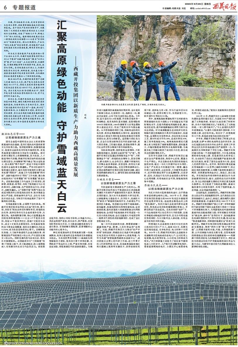 8月28日,《西藏日?qǐng)?bào)》以題為《匯聚高原綠色動(dòng)能 守護(hù)雪域藍(lán)天白…...