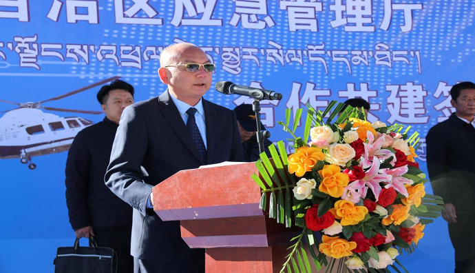 洪力代表區(qū)應(yīng)急管理廳對西藏民航投為自治區(qū)航空應(yīng)急救援所作出的突出貢獻表示感謝。他指出,此次簽約授牌儀式,是深入學(xué)習貫徹習近平總書記關(guān)于應(yīng)急救援體系建設(shè)重要指示精神,全面落實自治區(qū)黨委、政府加強航空應(yīng)急救援力量建設(shè)的重要舉措,希望雙方凝聚共識、形成合力,著眼我區(qū)自然災(zāi)害和事故災(zāi)難特點,本著“資源共享、共建共用、協(xié)同應(yīng)對、一體聯(lián)動”的原則,以救援任務(wù)需要為導(dǎo)向,以救援能力提高為核心,立足現(xiàn)有資源,著眼長遠發(fā)展,突出優(yōu)勢互補,強調(diào)實訓(xùn)實戰(zhàn)。