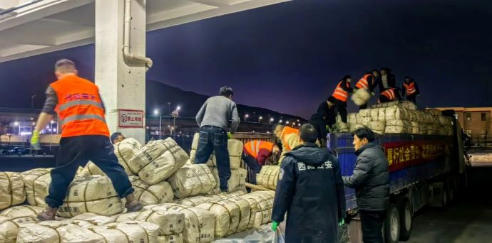 1月9日20點(diǎn),拉薩貢嘎國(guó)際機(jī)場(chǎng)貨站內(nèi)燈火通明,西藏開(kāi)投集團(tuán)20多名工作人員正在緊急卸裝救援物資,一件件棉衣棉被下了飛機(jī)立即裝車,準(zhǔn)備運(yùn)往災(zāi)區(qū)。