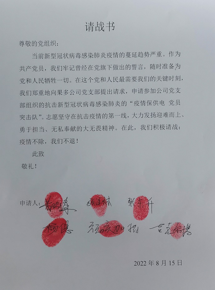 (黨員突擊隊(duì)請(qǐng)戰(zhàn)書 王強(qiáng)攝)