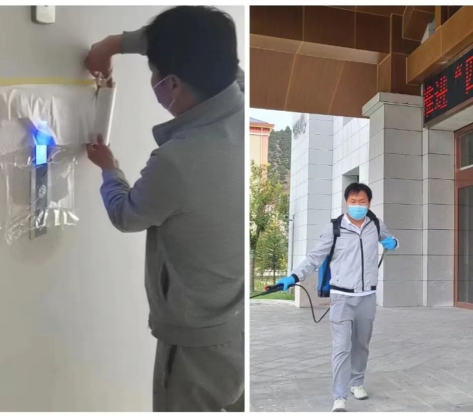 此次疫情發(fā)展伊始,酒店周邊已多處發(fā)生感染病例,距最近的高風(fēng)險區(qū)域不到100米。孫海崗帶領(lǐng)部門人員,沖在“疫”線,堅持每天對酒店各個區(qū)域進行2次消殺,不留死角。由于酒店占地面積大,單體建筑分布較廣,完成一次全面徹底消殺用時需要2小時以上。孫海崗深知消殺工作的重要性,在工作過程中任勞任怨,埋頭苦干。