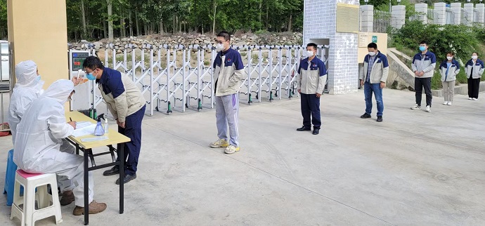 嘎堆水電廠現(xiàn)場,白班人員吃完早餐,戴好口罩,自覺接受體溫檢測,發(fā)現(xiàn)異常將第一時間予以隔離。這是電廠疫情期間的強(qiáng)制保障措施,既是對員工身體健康負(fù)責(zé),也是對安全生產(chǎn)負(fù)責(zé)。戰(zhàn)“疫”保電,從我做起,從每一個細(xì)節(jié)做起。