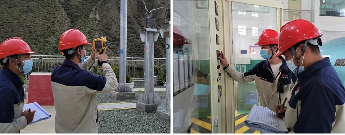 運(yùn)維值班人員分別對廠內(nèi)水輪發(fā)電機(jī)組的勵磁系統(tǒng)、保護(hù)盤柜、調(diào)速器控制系統(tǒng)、潤滑油站、振擺監(jiān)測柜、出口開關(guān)柜等系統(tǒng)和廠外35千伏升壓站主變、互感器、斷路器、母線、避雷器等設(shè)備進(jìn)行大約需要一個小時的巡檢和特巡,通過檢查設(shè)備的運(yùn)行方式、隱患和缺陷等情況,全力保障機(jī)組安全穩(wěn)定運(yùn)行。