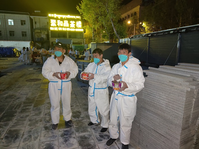 9月15日,接到自治區(qū)國資委及西藏開投集團公司通知,拉薩新建方艙醫(yī)院需工程類人員支援,酒店緊急抽調工程類專業(yè)人員4人前往支援,從15日21時到次日上午9時完成了支援任務。12個小時的忙碌下來,每個人都是汗流浹背,可沒有人抱怨,沒有人喊苦喊累。
