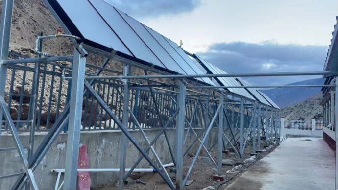 日喀則市定日縣曲當(dāng)鄉(xiāng)德吉村、優(yōu)帕村、嚴(yán)曲村位于珠穆朗瑪峰自然保護(hù)區(qū)核心區(qū),均為定日縣偏遠(yuǎn)邊境鄉(xiāng)村。項目供暖總面積為593.39m2,包括太陽能集熱器系統(tǒng)、輔助熱源(空氣源熱泵),儲熱系統(tǒng)、末端設(shè)施,光伏發(fā)電系統(tǒng),建筑節(jié)能改造等內(nèi)容。在日喀則市發(fā)改委的領(lǐng)導(dǎo)下,南亞公司(西藏開投下屬二級公司)以人為本、科學(xué)管理、精心組織,克服設(shè)備運輸艱難、人員組織困難、施工機械短缺、項目工期緊張等種種困難,如期實現(xiàn)了項目投產(chǎn)。同時,為評估和提升項目效能,配套了PLC自控柜,對供暖數(shù)據(jù)進(jìn)行遠(yuǎn)程收集及數(shù)據(jù)分析。在本項目運行一個采暖期后,將對項目的規(guī)模效益、財務(wù)效益、綜合效益進(jìn)行綜合評價,并對清潔能源供暖方式替代傳統(tǒng)燃料的減碳效果進(jìn)行科學(xué)分析,確保形成村居供暖工程可靠性好、性價比高、適宜推廣的決策方案,為全面復(fù)制推廣實施全區(qū)農(nóng)牧區(qū)清潔供暖供熱項目做出貢獻(xiàn)。