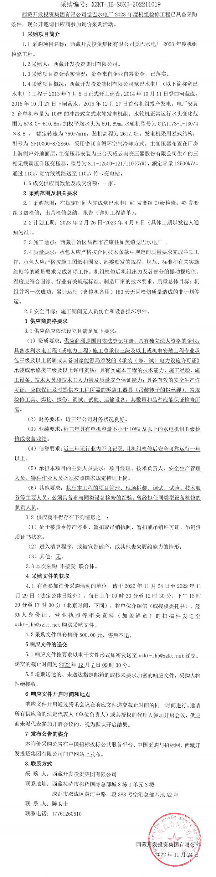 機(jī)組檢修工程詢價(jià)采購(gòu)公告