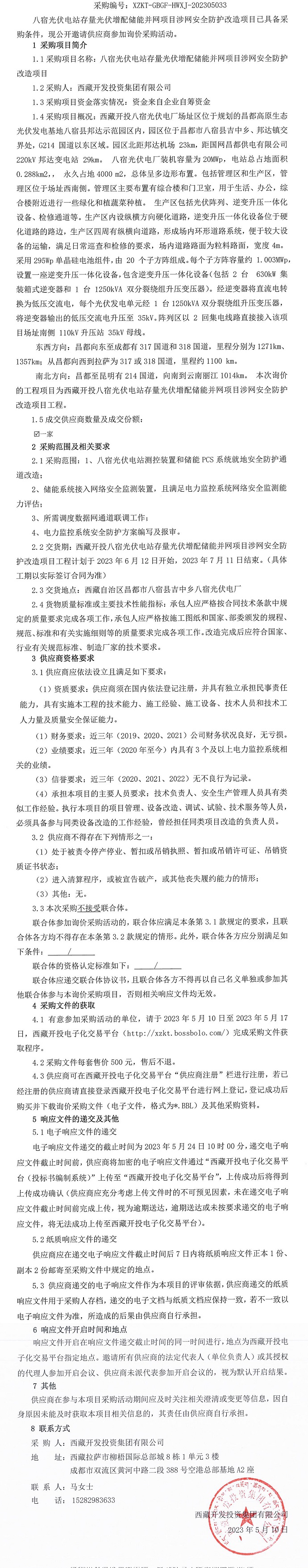 八宿光伏電站存量光伏增配儲能并網(wǎng)項目涉網(wǎng)安全防護改造項目詢價采購公告