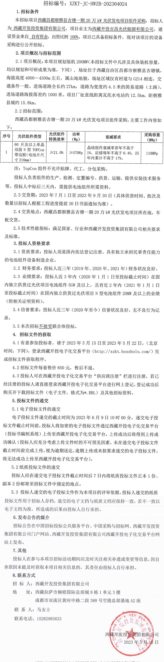 西藏昌都察雅縣吉塘一期20萬(wàn)kW光伏發(fā)電項(xiàng)目組件采購(gòu)招標(biāo)公告