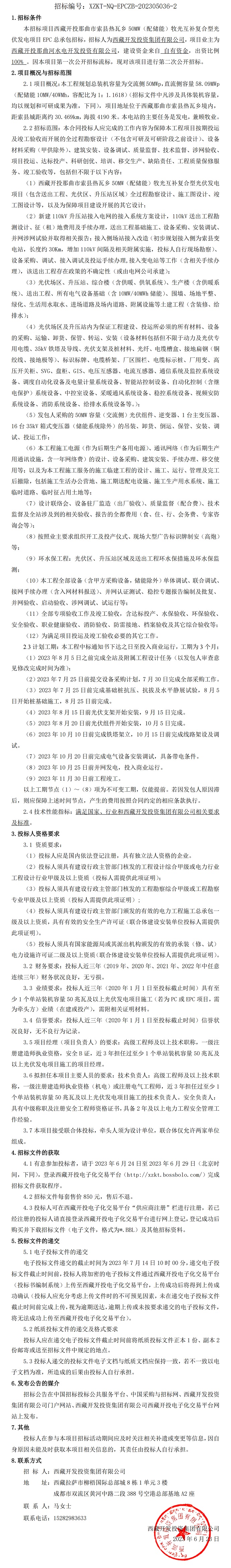 伏發(fā)電項目EPC總承包招標(第二次)公告