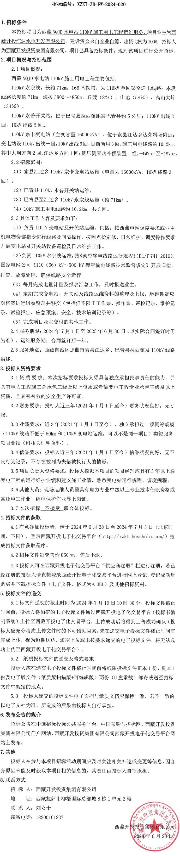 西藏NQJD水電站110kV施工用電工程運維服務招標公告