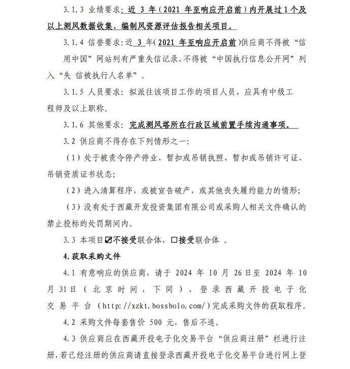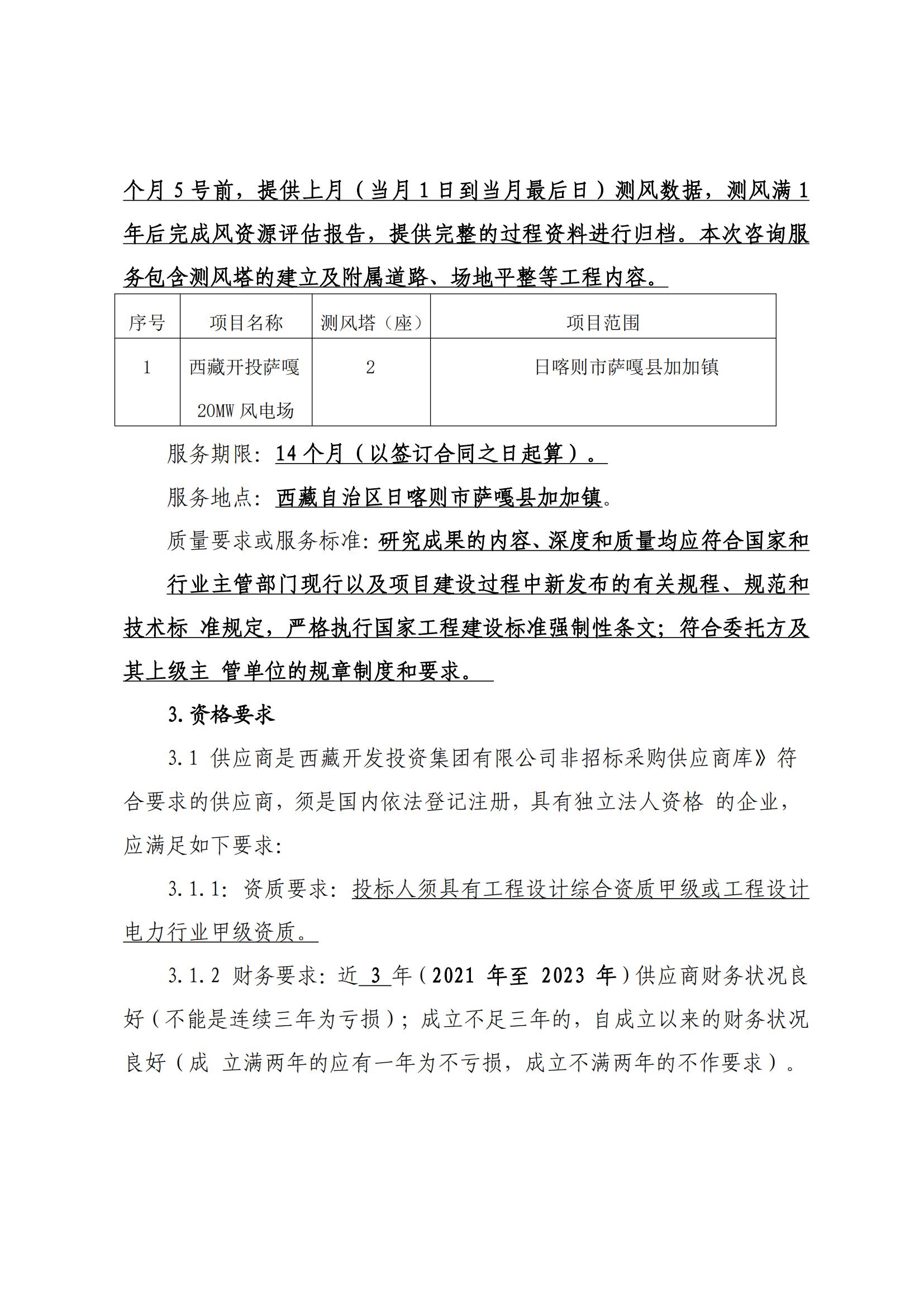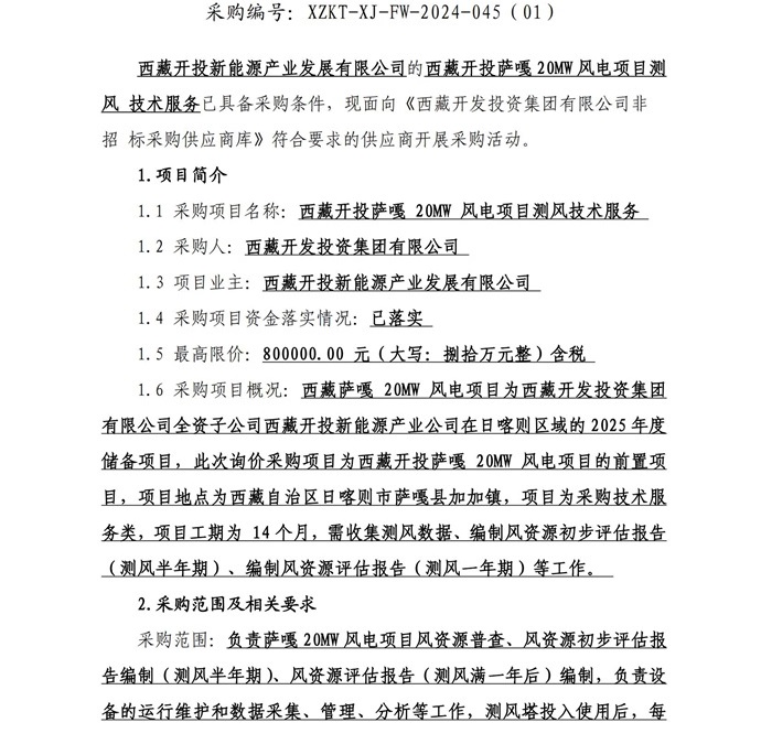 西藏開投薩嘎20ML風(fēng)電項(xiàng)目測風(fēng)技術(shù)服務(wù)詢價(jià)采購公告(第二次)
